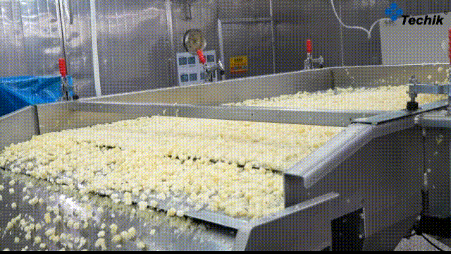 为了让土豆丁“通行顺畅”,太易分选机专项改造喂料系统,通过调控优化振动频率与幅度,使土豆丁均匀平铺、分散,这样一来,不仅分选效果大幅提升,物料带出亦显著降低,助力企业实现提高物料利用率、提升收益的目标。