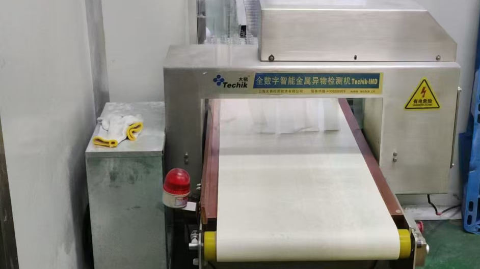 作为产品出厂前的关键安全关卡,它每天要完成包装规格产品的金属杂质筛查。在此次回访中,我们亲眼见证了它的稳定表现:面对袋装、盒装等多样包装形态,设备的检测模块始终保持高灵敏度,金属杂质识别准确无遗漏;输送带运转平滑无卡顿,即使在高频次启停切换中,也未出现物料输送大偏移的情况。
